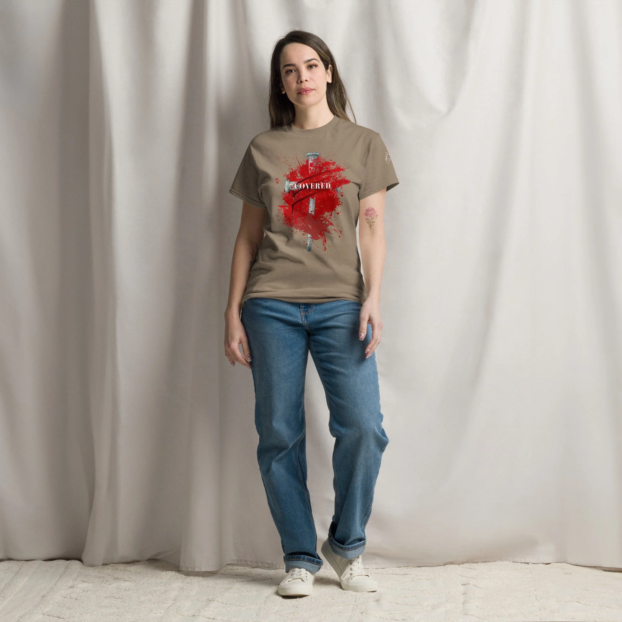 The 100% cotton unisex classic tee will help you land a more structured look. It sits nicely, maintains sharp lines around the edges, and goes perfectly with layered streetwear outfits. Plus, it's extra trendy now!